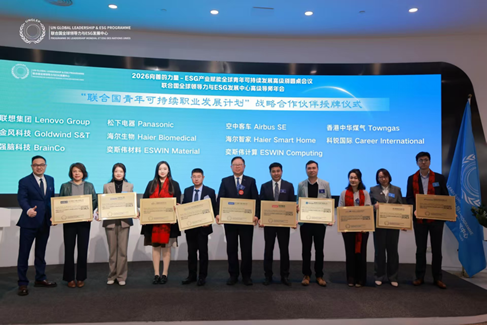 會議期間,UNGLEP 向聯想集團、空中巴士、松下電器、金風科技、強腦科技、海爾生物、海爾智家、奕斯偉材料、奕斯偉計算、香港中華煤氣、科銳國際等多家全球領先企業,頒授「跨國企業 ESG 全球青年職涯可持續發展戰略合作夥伴」證書,並正式啟動面向全球青年開放申請的領先企業實習實訓體系。